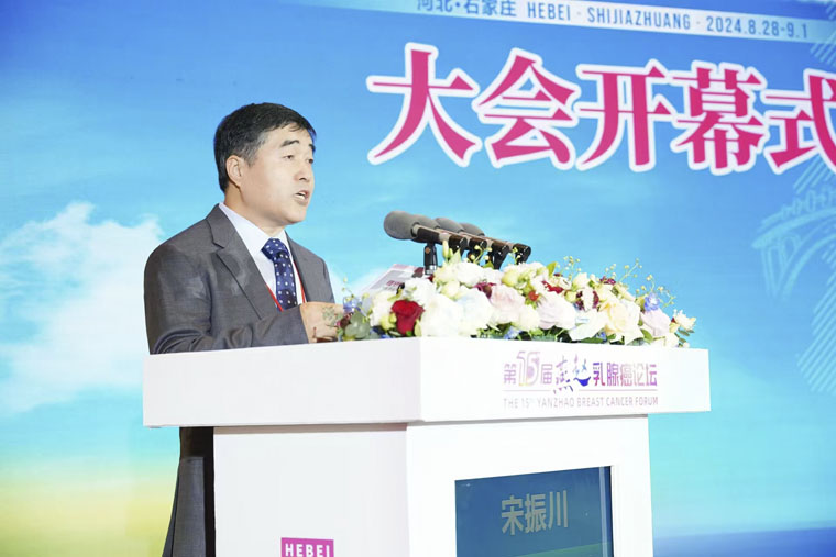 单保恩书记在致辞中向省外专家和省内医护同仁对我院乳腺癌诊治工作的大力支持表示感谢。他指出,本次学术会议的召开体现了河北省乳腺领域各位同道积极进取、不畏艰辛的学术精神。他衷心希望全体参会的专家学者进一步加强沟通,推动我省乳腺肿瘤领域的发展。