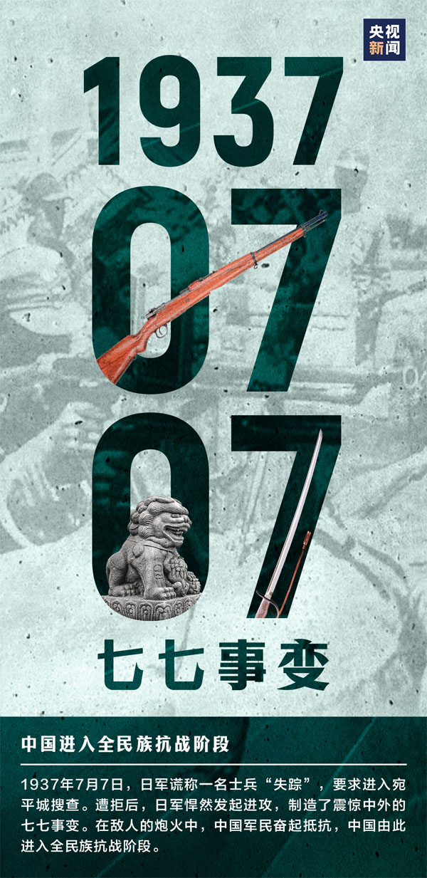 今年是中国人民抗日战争暨世界反法西斯战争胜利80周年,今天是七七事变爆发88周年。在此节点,让我们回望历史,记住这些浸染血泪的日子。铭记!自强!