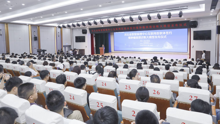 7月11日,河北省数智病理中心互联网医联体签约暨肿瘤病理诊断大模型发布仪式在我院东院区举行。省卫生健康委、省/市医疗保障局、河北医科大学、河北移动等领导,全体院领导,我院职工代表及多家主流媒体,共同见证河北病理领域数智化发展的重要里程碑。